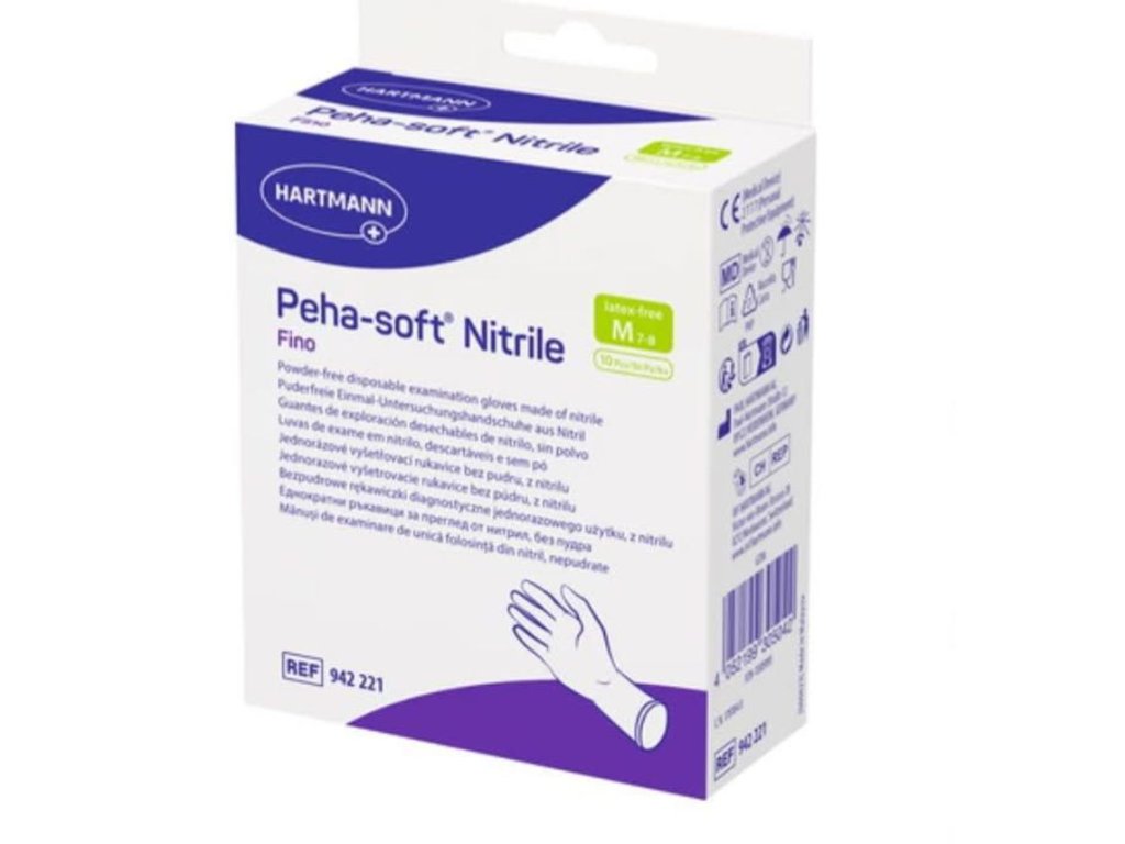 Rukavice Peha-soft® Nitrile Fino vo veľkosti M sú vysoko kvalitné jednorazové vyšetrovacie rukavice vyrobené z veľmi mäkkej nitrilovej gumy modrej farby. Poskytujú spoľahlivú ochranu, maximálny komfort a výbornú hmatovú citlivosť pri práci. Vhodné sú pre použitie v zdravotníctve, laboratóriách, pri čistení, v kozmetike aj v domácnostiach.