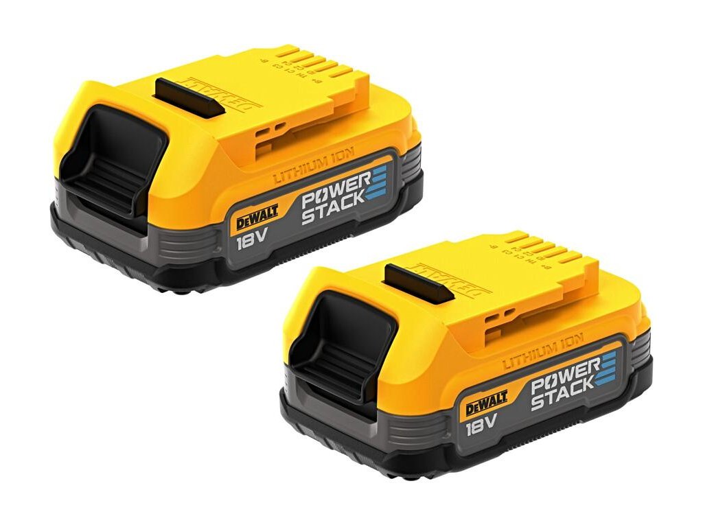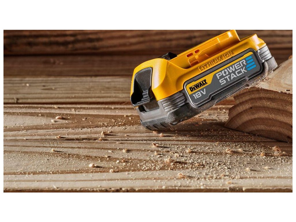 - Kompaktný akumulátor 18V XR POWERSTACK™ je prvý akumulátor na svete, ktorý využíva technológiu plochých akumulátorových článkov v stavebníctve.