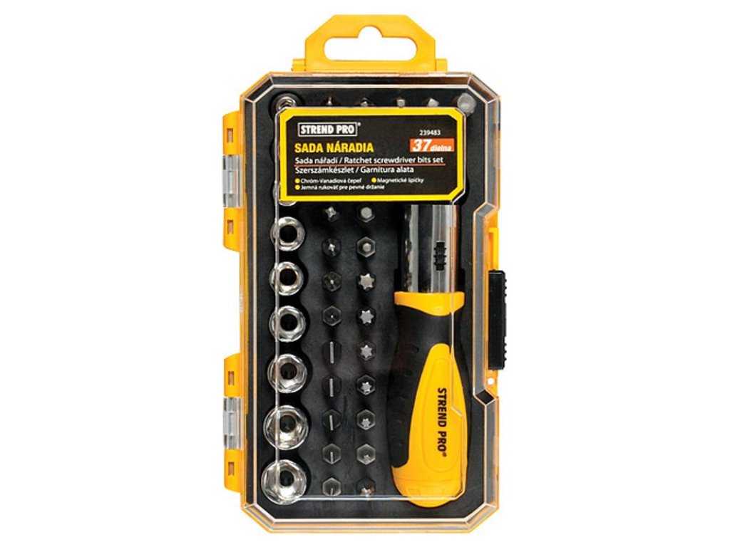 Sada bitov a hlavíc Strend Pro WT536, 37 dielna, s račňovým skrutkovačom