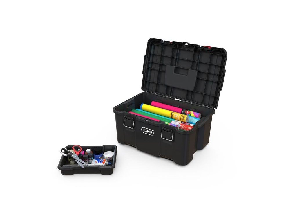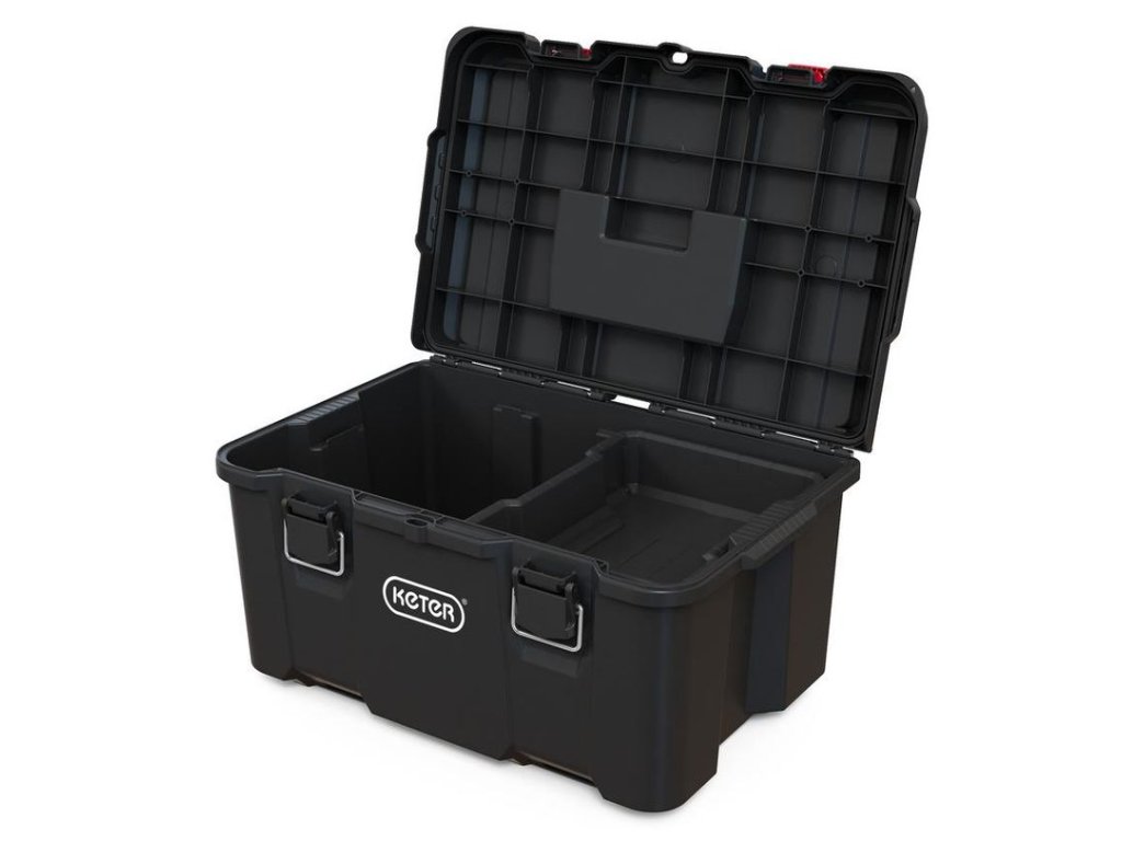 - box na náradiemá ergonomickú hornú rukoväť s g umenou rukoväťou, prepínacie kovové západky, bočné držadlá, očko na visiaci zámok pre uzamykateľnosť (kapacita 20 kg); 52,5 x 34,5 x 26 cm (DxŠxV)