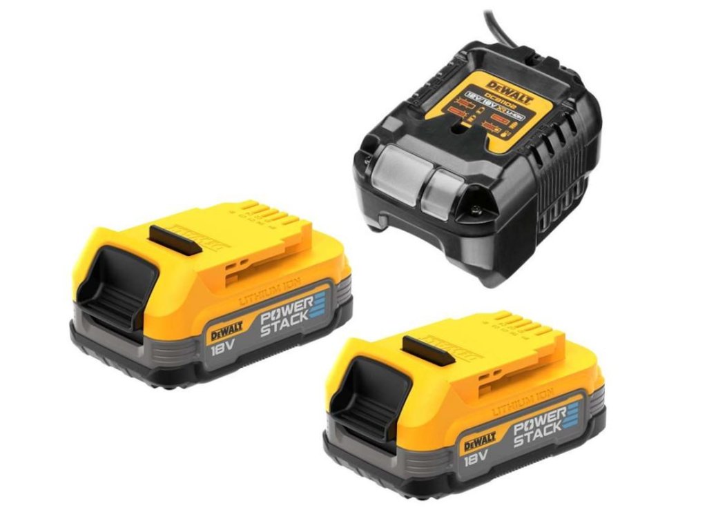 - Kompaktný akumulátor 18V XR POWERSTACK™ je prvý akumulátor na svete, ktorý využíva technológiu plochých akumulátorových článkov v stavebníctve.