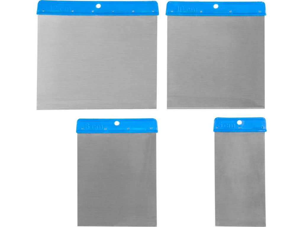 Sada stierok Strend Pro by nemala chýbať vo výbave murárov. Používa sa na čistenie dier, zoškrabávanie prebytočného materiálu a pod. Disponuje nerezovým britom. Sada pozostáva zo 4 stierok so šírkou ostria 50, 80, 100 a 120 mm.