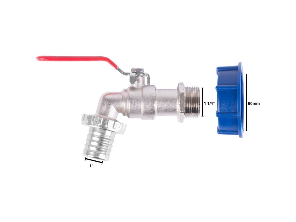 Sada Strend Pro, ventil 1 1/4" + plastová redukcia 60 mm + výpust 1", na IBC nádrž, MOSADZ