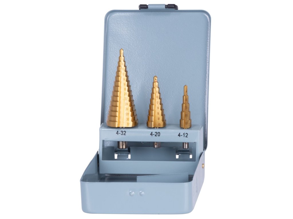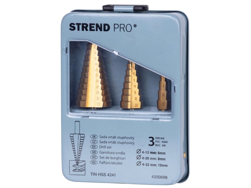 Sada stupňovitých vrtákov Strend Pro SS421, 4-12, 4-20, 4-32 mm, TiN, HSS 4241 rovný, do kovu