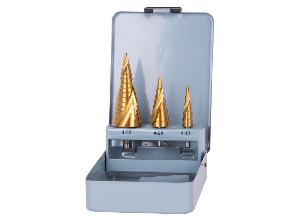 Sada stupňovitých vrtákov Strend Pro SS422, 4-12, 4-20, 4-32 mm, TiN, HSS 4241 špirálový, do kovu
