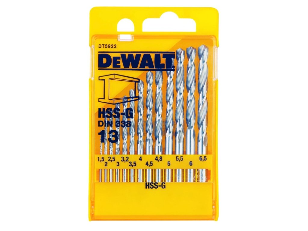 13-dielna súprava vrtákov do kovu HSS-G v plastovej kazete: Ø 1,5, 2, 2,5, 3,2, 3, 3,5, 4, 4,5, 2× 5, 5,5, 6, 6,5 mm