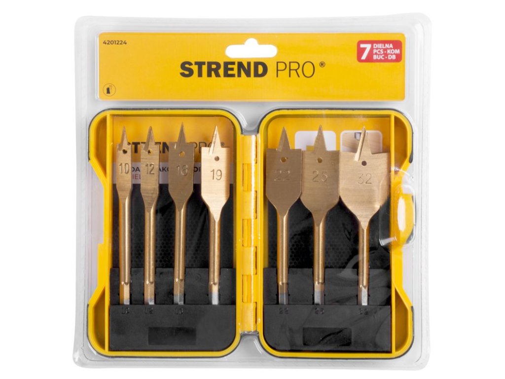 Praktická sada plochých vrtákov Strend Pro do dreva v puzdre. Ideálna na vŕtanie otvorov do tvrdého a mäkkého dreva.