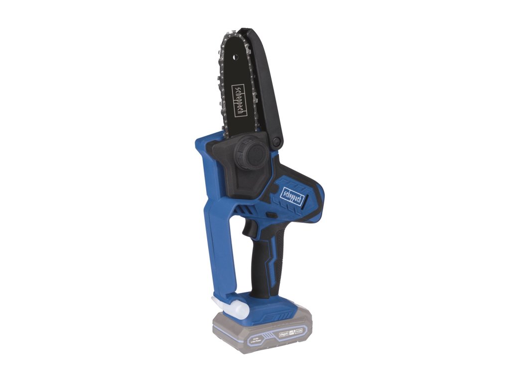 Pila je vybavena kvalitní 5" ProCut lištou a řetězem, které nabízejí rychlost řezu až 4,8 m/s, což zajišťuje rychlý postup při práci. Kompaktní konstrukce umožňuje snadné použití i v hůře přístupných místech. Řetěz pracuje plynule a s nízkou úrovní vibrací, což přispívá k pohodlí obsluhy. Maximální průměr řezu je až 127 mm, což dělá z pily všestranného pomocníka. Ergonomická rukojeť s měkkým povrchem je vybavena bezpečnostním spínačem. K bezpečnosti při práci přispívá i ochrana rukou a kryt řetězu. Napnutí řetězu lze snadno upravit podle potřeby. Praktický úložný prostor pro olejovou lahvičku přímo na přístroji zvyšuje pohodlí a usnadňuje údržbu řetězu a lišty. Stroj se dodává bez baterie a nabíječky.