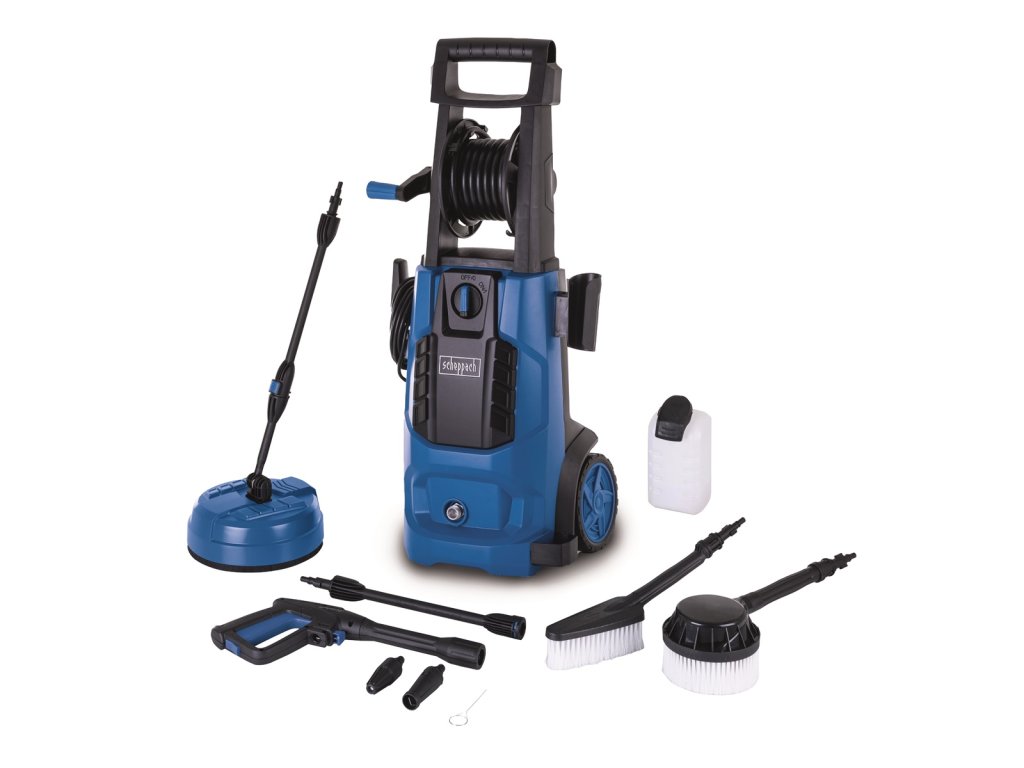 Tlaková myčka Scheppach HCE 2800 je velmi výkonná myčka, se kterou, mimo všech běžných úkolů, lehce zvládnete i většinu náročnějších úklidových prací. Díky standardně dodávanému příslušenství se můžete pustit do jakékoliv práce kolem domu, firmy, dílny nebo garáže. Bez problémů umyjete své auto, terénní čtyřkolku, motocykl, zahradní techniku, traktor nebo třeba loď. S vhodnými nástavci vyčistíte zídku, verandu, příjezdovou cestu nebo spáry v zámkové dlažbě.