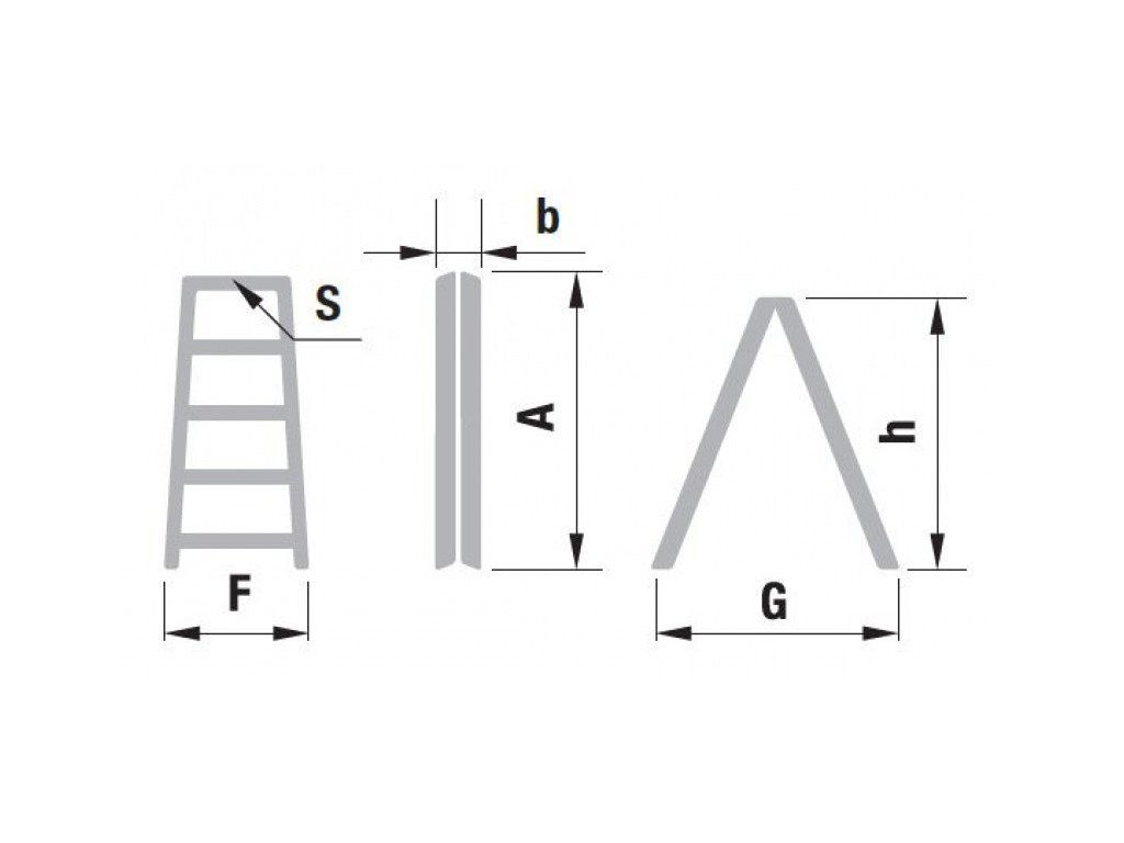 Obojstranné hliníkové schodíky FORTE, počet nášľapov 2 x 3, max. výška 0,63 m a šírka 426 mm.