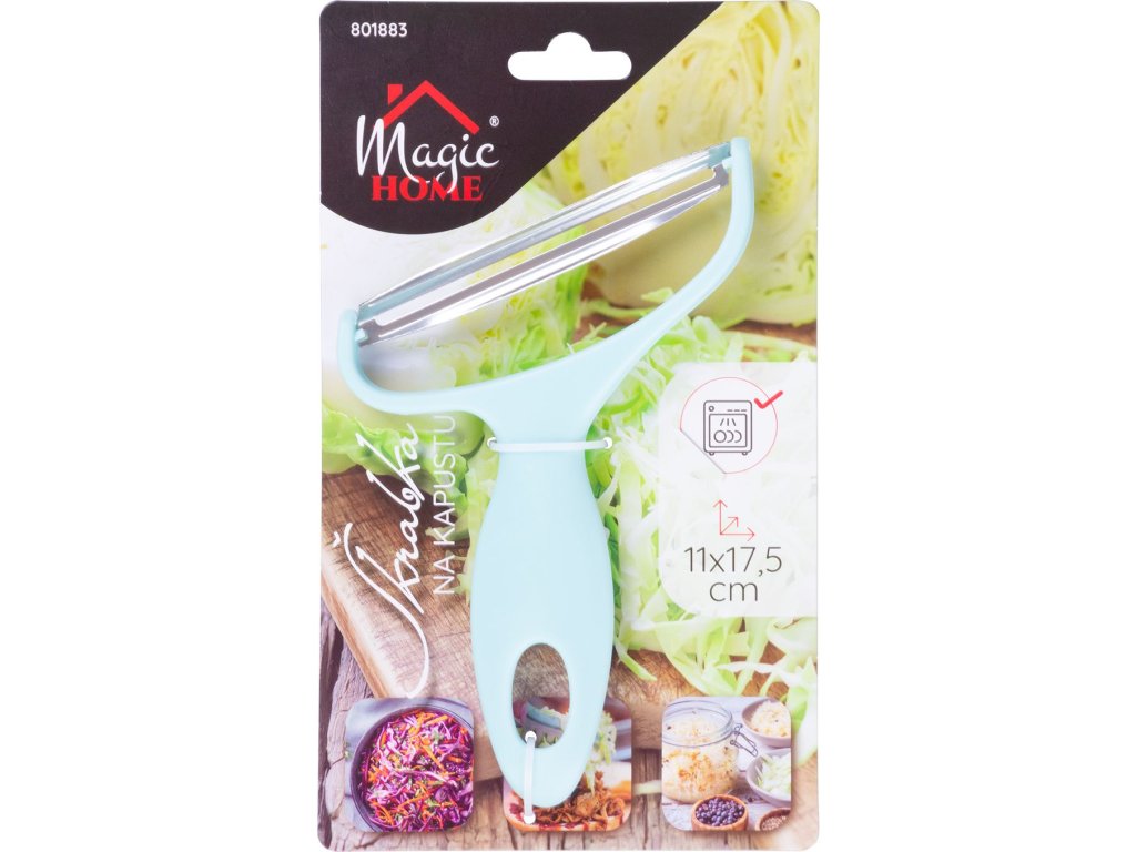 Kuchynská škrabka na kapustu MagicHome je skvelý pomocník pri strúhaní kapusty. Využijete ju pri výrobe kyslej kapusty či rôznych šalátov. Je vhodná na akýkoľvek druh kapusty. Disponuje ergonomickou rukoväťou. Ostrá čepeľ je vyrobená z nerezu a rukoväť je plastová. Vhodná do umývačky na riad. Rozmery: 11x17,5 cm.