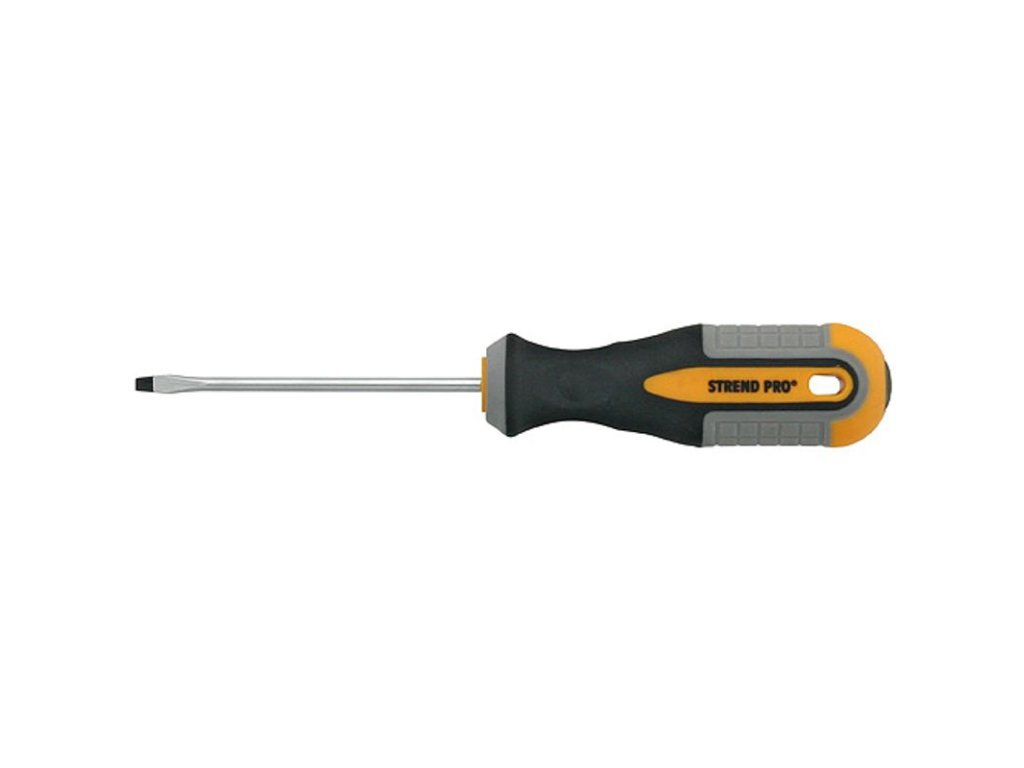 Skrutkovač Strend Pro by nemal chýbať vo vašej dielni. Je to plochý skrutkovač s rozmerom 3x100 mm. Je ideálny na uťahovanie a povoľovanie skrutiek s plochou drážkou. Rukoväť je vyrobená z plastu a zabezpečuje pohodlné uchopenie s možnosťou zavesenia.