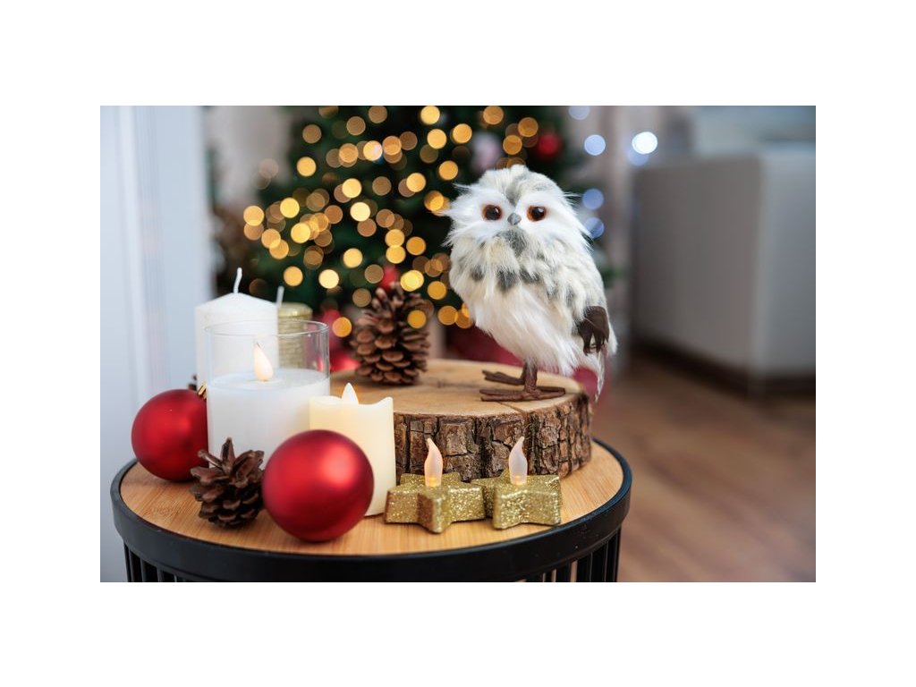 Dekorácia MagicHome Sova s bodkami skrášli váš domov počas vianočného obdobia. Farba je krémová. Rozmery dekorácie sú 7x9x15,5.