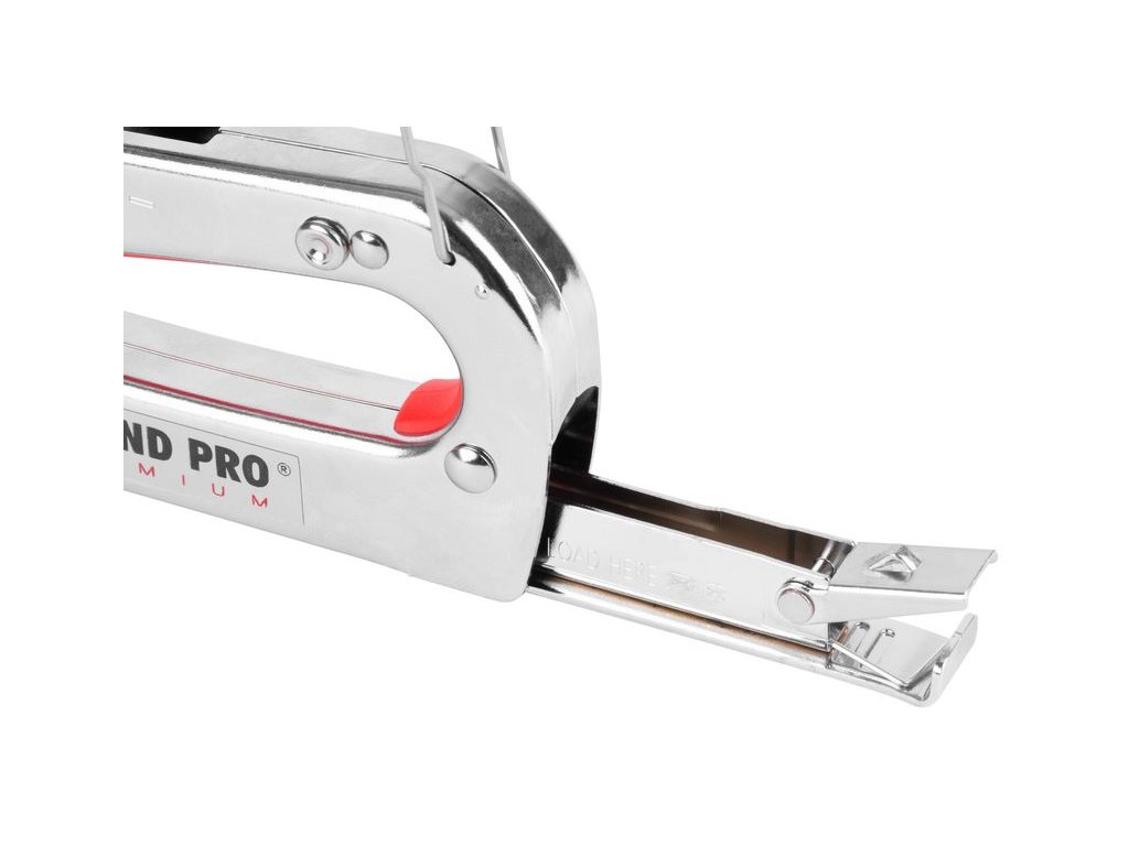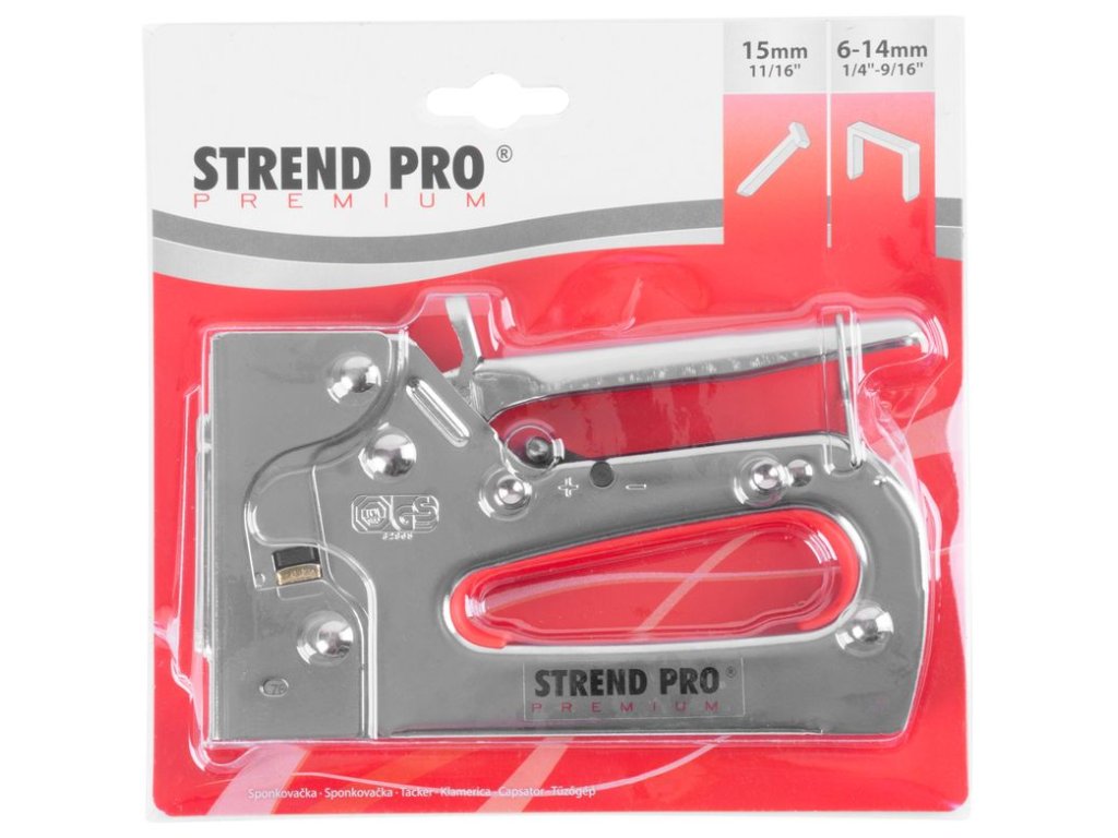 Ručná sponkovačka Strend Pro Premium je určená na spájanie materiálov pomocou sponiek. Je to robustný a pevný nástroj, s ktorým ľahko pripevnite rôzne materiály ako napríklad látky, čalúnenie, kartóny, rámy a pod. Vhodná pre spony typu B klinec 15 mm, C 6-14 mm.