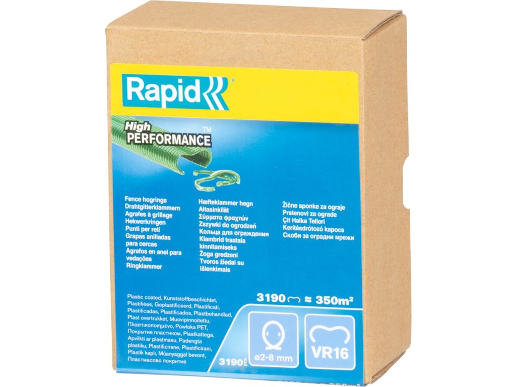 Spony RAPID VR16, PVC zelené, sponky pre viazacie kliešte RAPID FP216 a FP20, pre drôt 2-8 mm, bal. 3190 ks