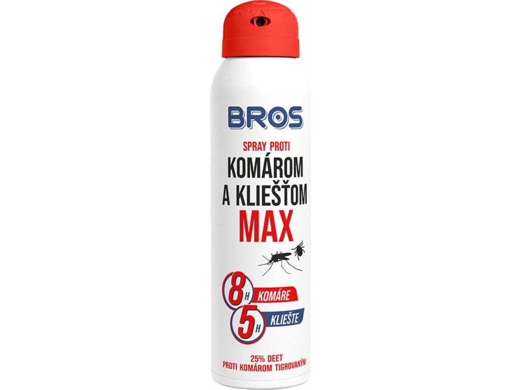 Sprej Bros proti komárom a kliešťom a ďalším druhom hmyzu, ktoré sajú krv. Vysoká koncentrácia (30 %) aktívnej zložky DEET zaručuje dlhodobú ochranu proti hmyzu a chorobám, ktoré prenáša.. Sprej odpudzuje komáre - aj tropické komáre (po dobu 8 hod), kliešte (po dobu 5 hod) a muchy (po dobu 7 hod). POUŽITIE: Sprej sa aplikuje na oblečenie a miesta náchylné k uhryznutiu zo vzdialenosti 15 cm. Pri nanášaní na hlavu a krk sa má najprv produkt nastriekať na dlane rúk a následne naniesť na hlavu a krk.