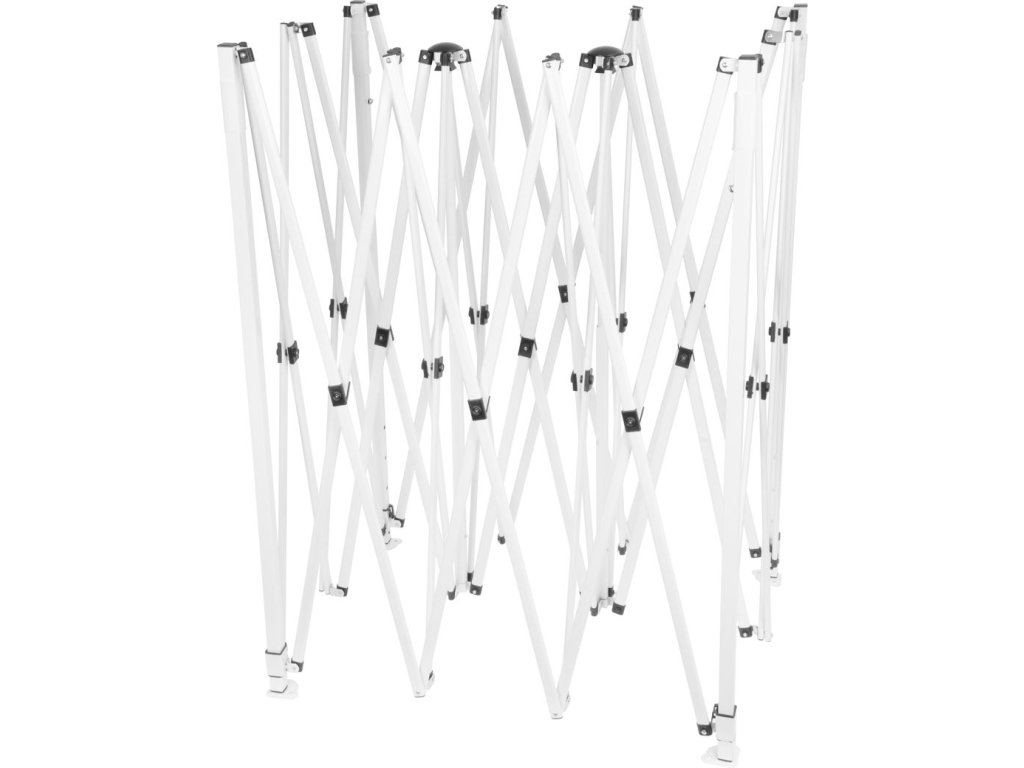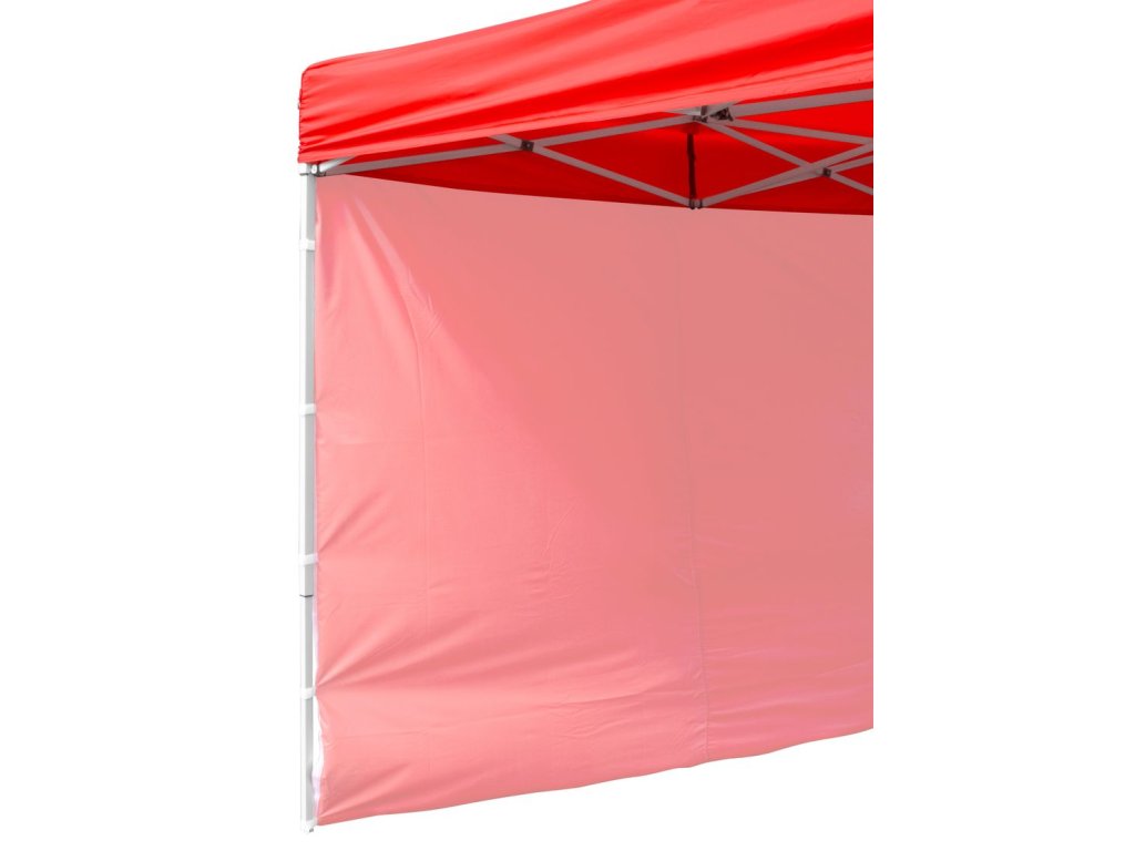 Štvorcový červený záhradný stan vytvára miesto pre posedenie. Vrchná časť stanu je pokrytá polyesterovým plátnom, odolným voči UV žiareniu a vode. Stan je teda vhodným prostriedkom na ochranu pred slnkom, rovnako ako aj pred dažďom. Plátno je umiestnené na kovovej konštrukcii, ktorá poskytuje pevnosť a stabilitu celého stanu. Potrebnú výšku je možné nastaviť si v 3 krokoch. Dve zo štyroch strán stanu je možné taktiež zakryť, čo vám poskytuje možnosť vytvoriť si súkromnejší priestor. Celková výška postaveného stanu je 314 x 324 x 334 cm. Vstupná výška, bez strechy, je 192 x 201 x 210 cm. Rozmery stanu sú 3 x 3 m.