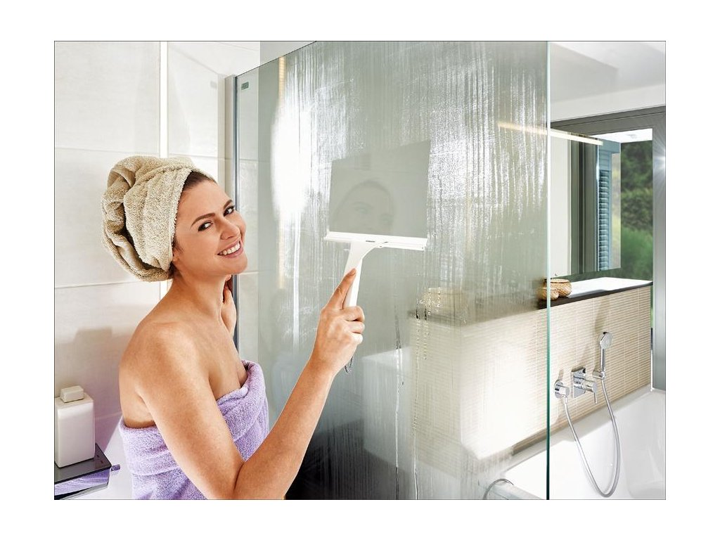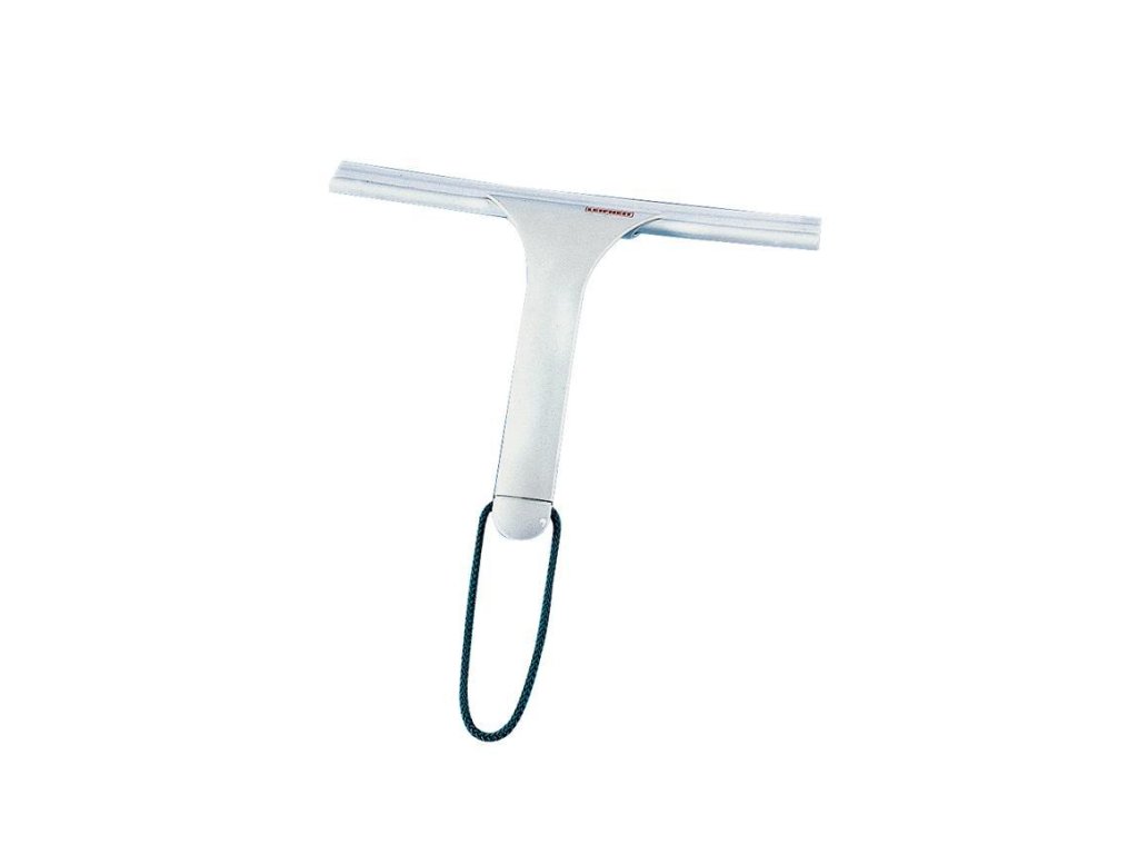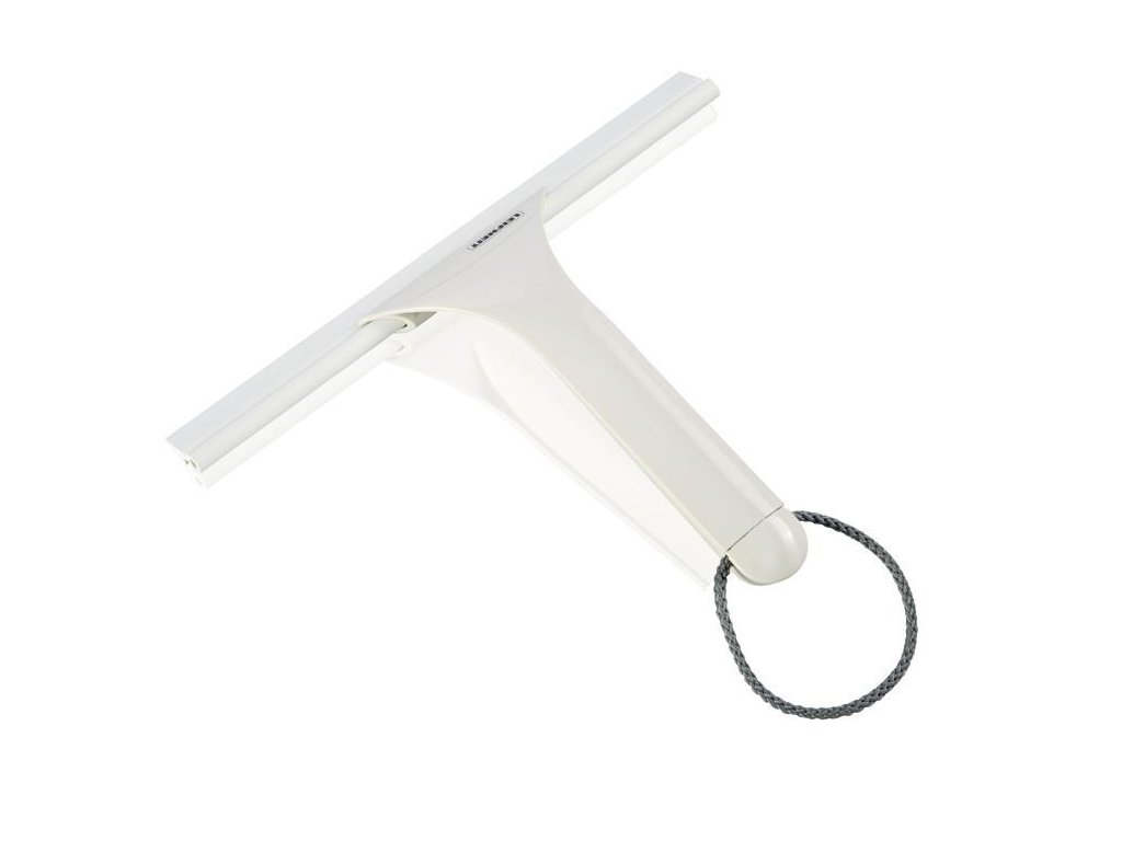 Ideálna stierka pre sprchové kúty zo skla, akrylu alebo dlaždíc, stieracia časť je z bielej gumy, teda nerobí škvrny, vrátane remienka na zavesenie, šírka 24 cm, záruka 3 roky.