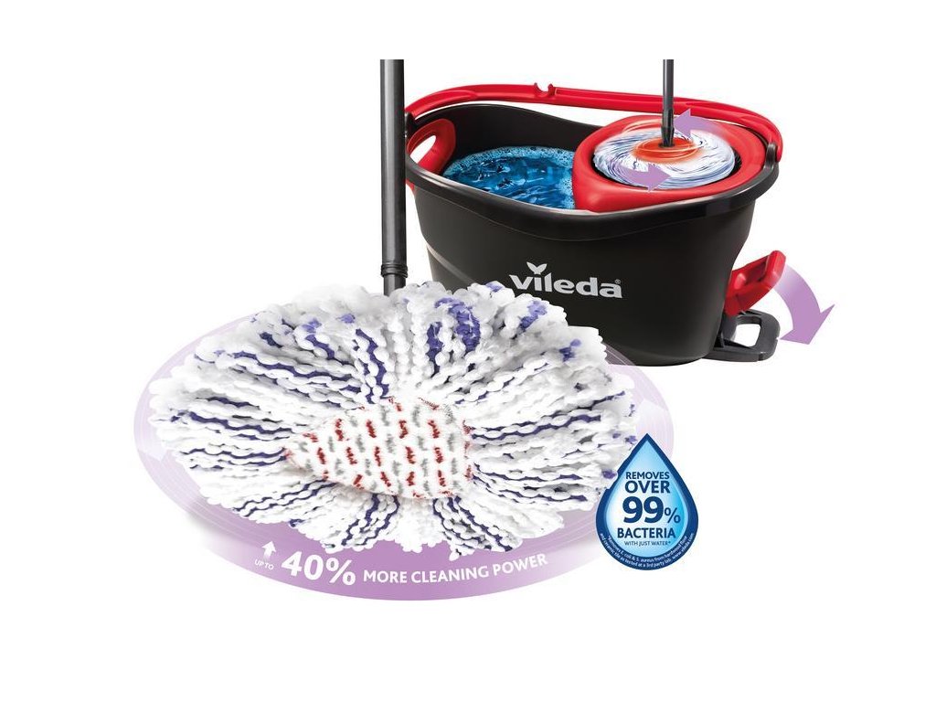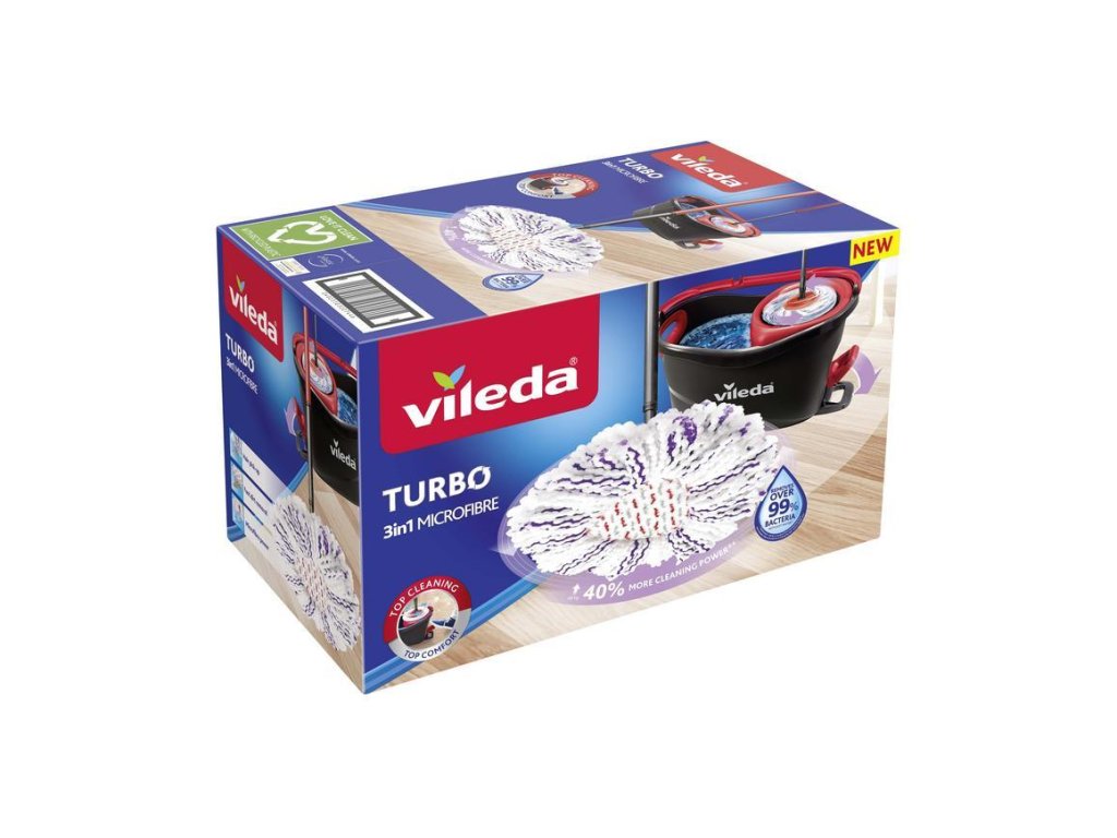 Upratovacia súprava Vileda TURBO 3v1 obsahuje strapcový mop a vedro so šliapacím pedálom. Mop : Strapcový rotačný mop z mikrovlákna rýchlo a efektívne vyčistí vašu podlahu. Jedinečný umývací návlek kombinuje tri druhy strapcov: