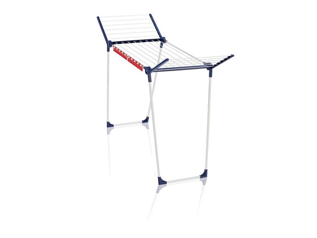 Stabilný sušiak na bielizeň s výklopnými bočnicami, ideálny pre vnútorné aj vonkajšie použitie, šírka sušiaku je iba 55 cm, teda sa s ním aj v rozloženom stave ľahko manipuluje, 15 m sušiacej plochy = až 1,5 práčky bielizne, výška sklápacích bočníc 105 cm , možnosť zavesenia dlhých kusov odevov, vrátane 2 easyclipov na sušenie drobnej bielizne, záruka 5 rokov.