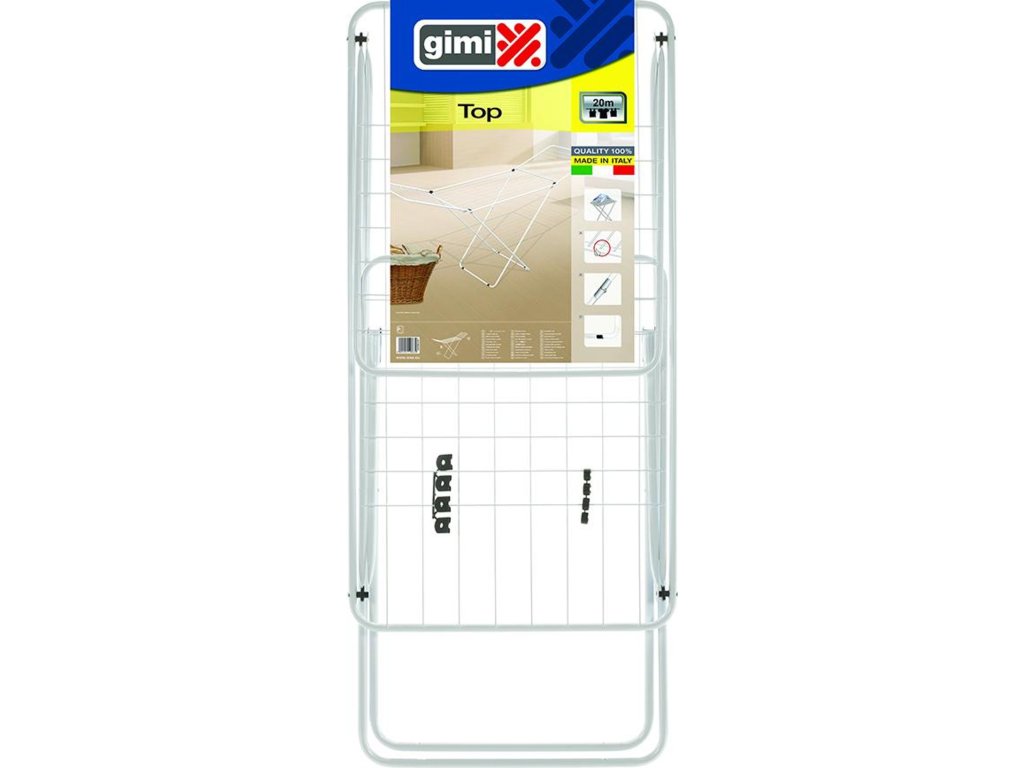 Sušiak na bielizeň Gimi Top so sklopnými nohami.Sušiaca plocha: 20 metrov.Vyrobené z ocele. So skladacími krídlami na sušenie delikátnych predmetov a protišmykovými nohami. Rozmer rozložený: (š × h × v) 200 × 55 × 93 cm. Rozmer zložený (š × h × v): 55 × 6 × 129 cm. Oceľová konštrukcia. Oceľové drôty.