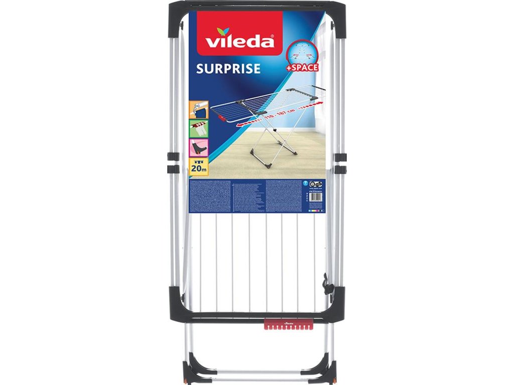 Vileda Surprise je vnútorný sušiak, ktorý je ideálny pre kohokoľvek s obmedzeným úložným priestorom. Jeho praktický a kompaktný dizajn a možnosť rozšíriť bočné krídla tak, aby ste získali viac priestoru.