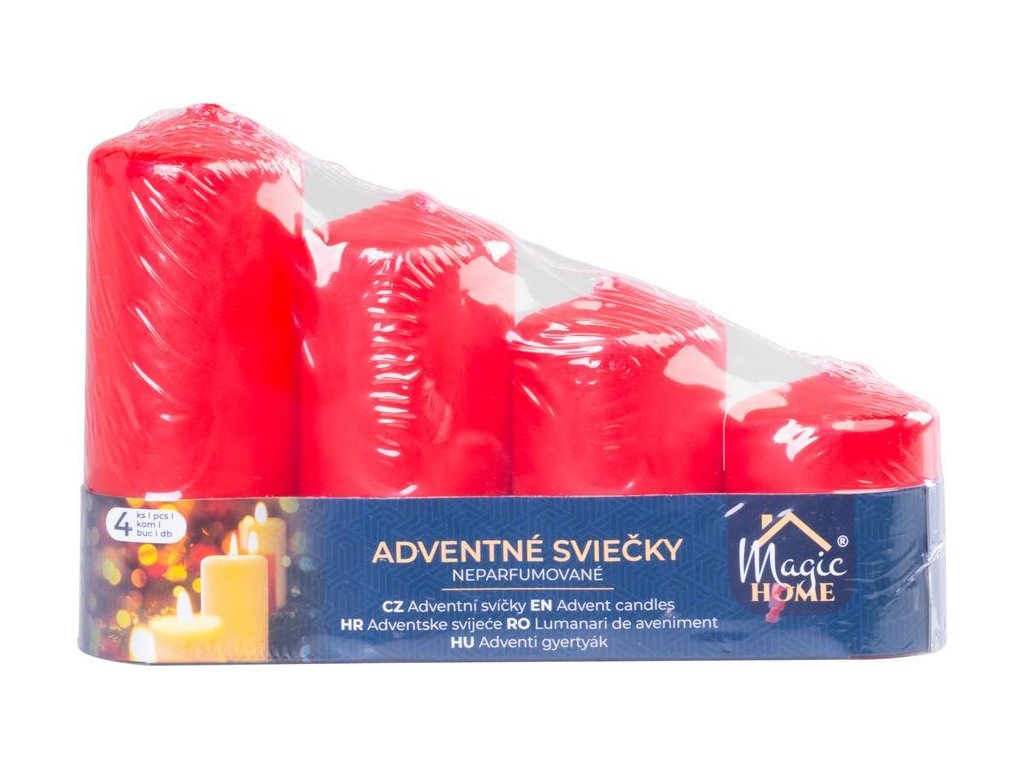 Sviečka MagicHome, vianočná, adventná, červená, 48 mm 60/80/100/120 mm, bal. 4 ks
