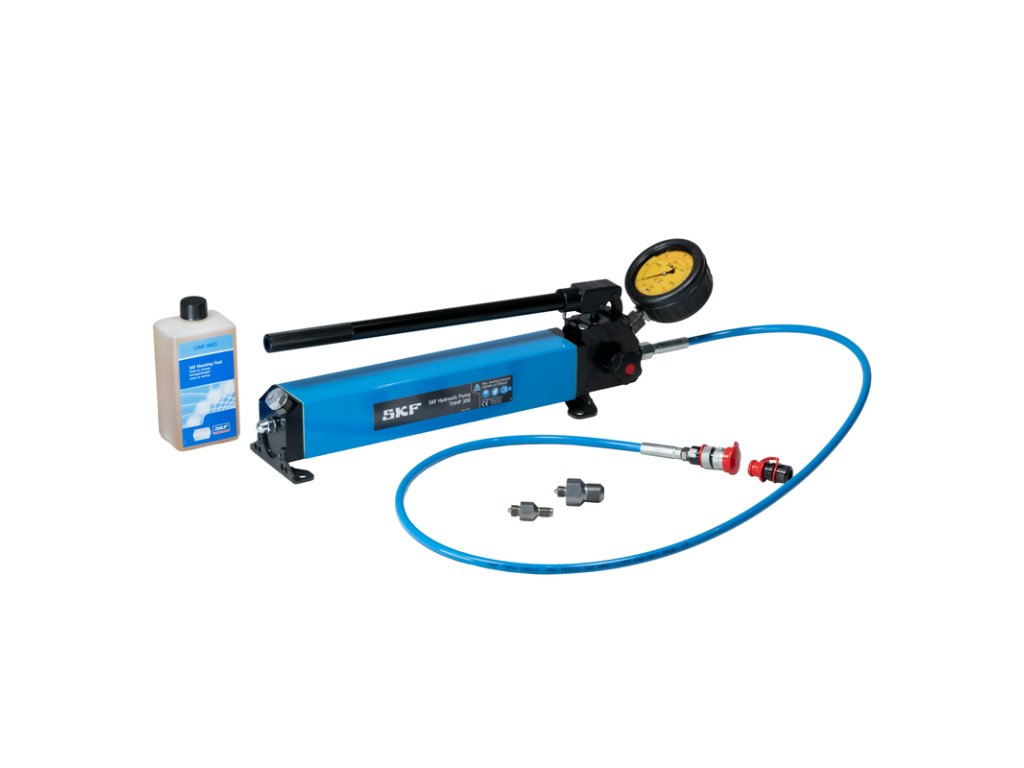 Vysokotlakové čerpadlo SKF THHP 300 pozostáva z vysokotlakového čerpadla s tlakomerom 0-300MPa (0-43 500 psi) a obsahuje vysokotlakovú hadicu a rýchlospojky. Dodáva sa voľná rýchlo pripojovacia spojka (THPN 300-1) a môže byť pripevnená k konverzným spojkám G1/4 a G3/4, aby vyhovovala aplikácii. Konštrukcia umožňuje automatické vrátenie oleja do zásobníka po uvoľnení tlaku, čím sa minimalizuje riziko úniku ropy do životného prostredia. Balené v pevnom ochrannom puzdre.