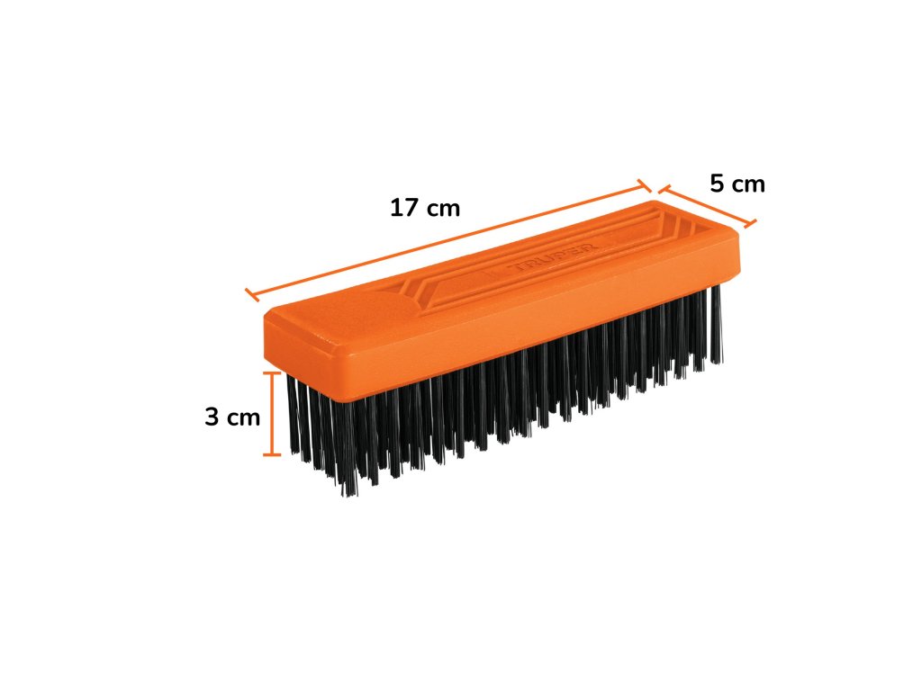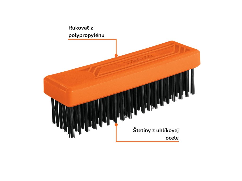 Drôtená oceľová kefa TRUPER CEA-36: kompaktný nástroj s 114 karbónovými štetinami a plastovým telom. Ideálna na čistenie kovových, drevených a betónových povrchov. Nevyžaduje montáž.
