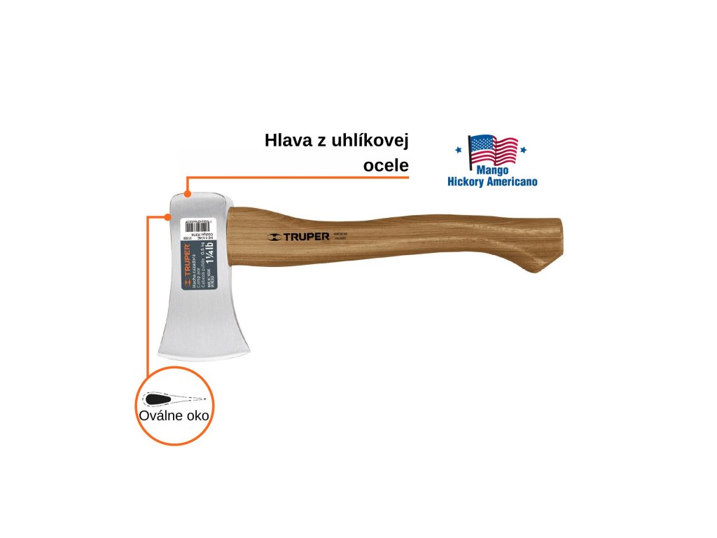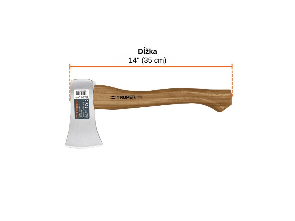 TRUPER – Kovaná sekera HC-1-1/4E: Rukoväť z dreva hickory 36 cm, 0,57 kg