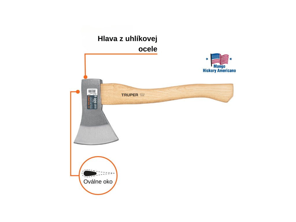 TRUPER – Kovaná sekera HE-600: Rukoväť z dreva hickory 36 cm, 0,59 kg