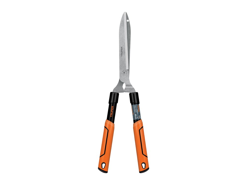 Obojručné nožnice na živý plot TRUPER TB-19: Nožnice s kvalitnou oceľovou čepeľou a ergonomickým dizajnom na pohodlné a presné tvarovanie živých plotov.