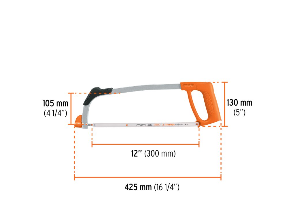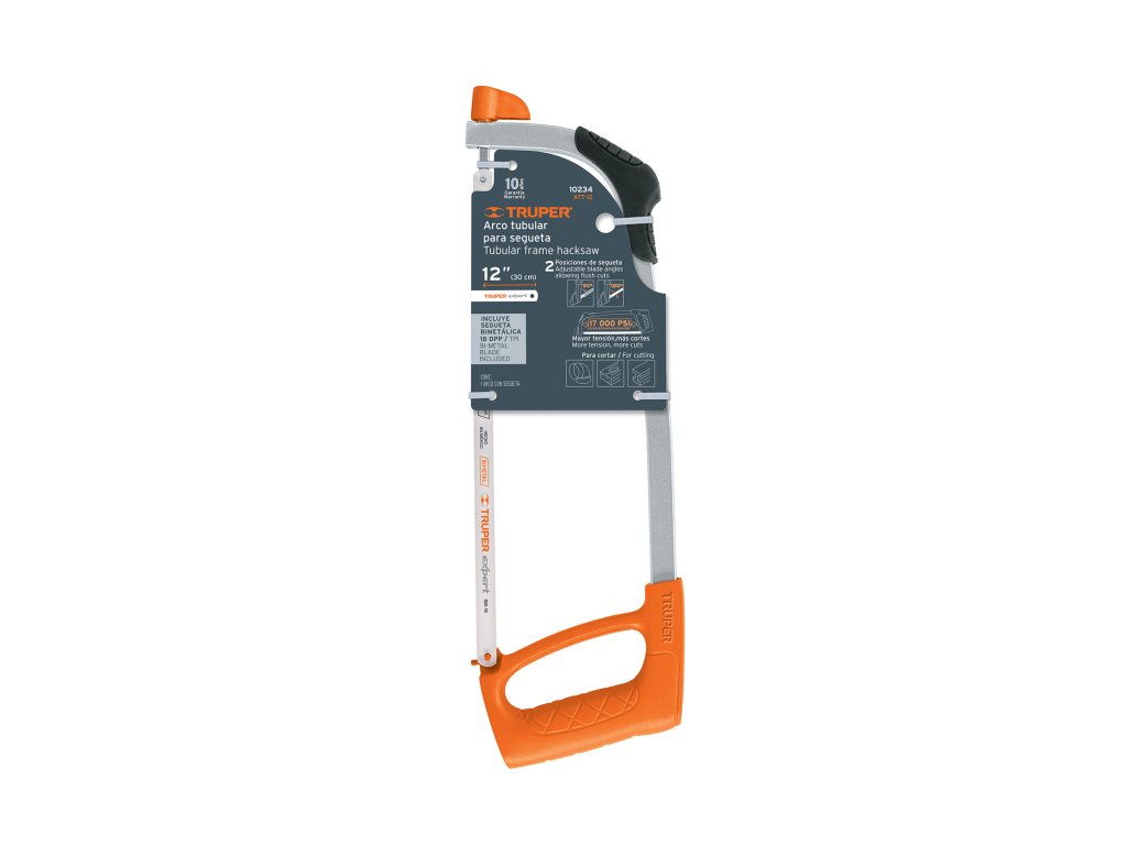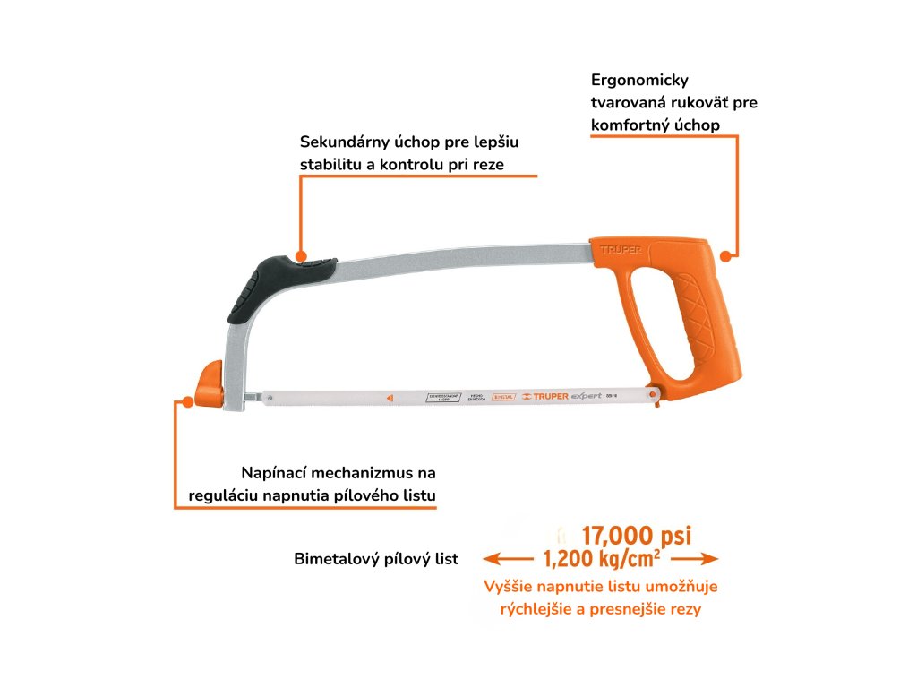Rámová píla na kov TRUPER ATT-12: profesionálny nástroj s robustným oceľovým rámom a ergonomickou rukoväťou pre pohodlné a presné rezanie kovov. Možnosť nastavenia čepele pod uhlom 90° a 180° zvyšuje flexibilitu pri práci.