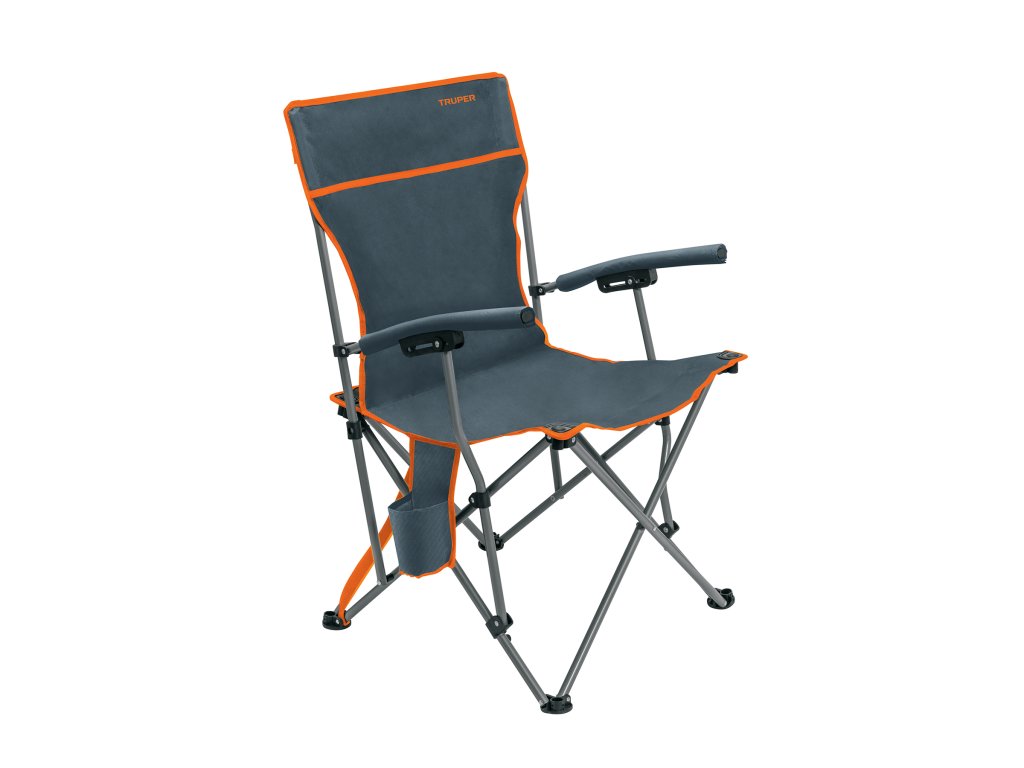 TRUPER – Skladacia kempingová stolička SILLA-30: praktická prenosná stolička s oceľovou konštrukciou, podrúčkami, držiakom na nápoj a nosnosťou 140 kg, ideálna na outdoor použitie.