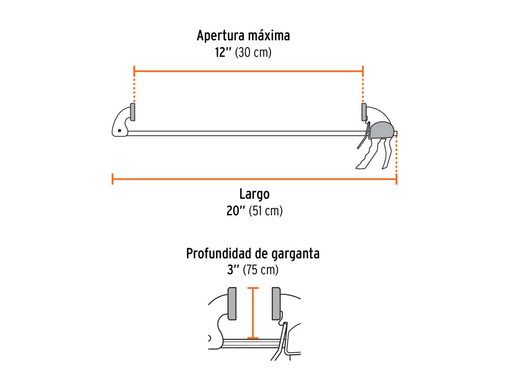 TRUPER Expert – Rýchloupínacia stolárska svorka PAR-212: profesionálna svorka s oceľovou lištou, nylonovým telom, rýchloupínacím mechanizmom a reverznými čeľusťami na upínanie aj rozperu.