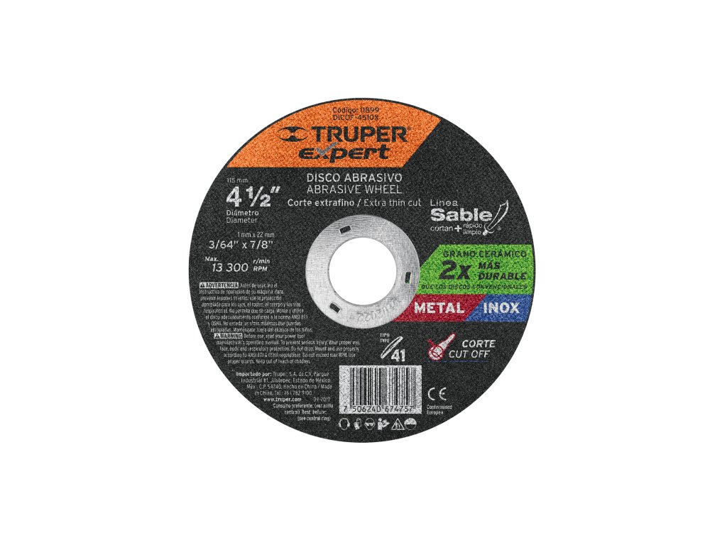 Rezný kotúč TRUPER eXpert DICOF-4510X je profesionálne príslušenstvo pre uhlové brúsky. Priemer 115 mm a hrúbka 1 mm umožňujú presné a rýchle rezanie kovu aj nehrdzavejúcej ocele. Vďaka kvalitnému materiálu je kotúč odolný a vhodný na intenzívne používanie v dielni, priemysle aj domácnosti.