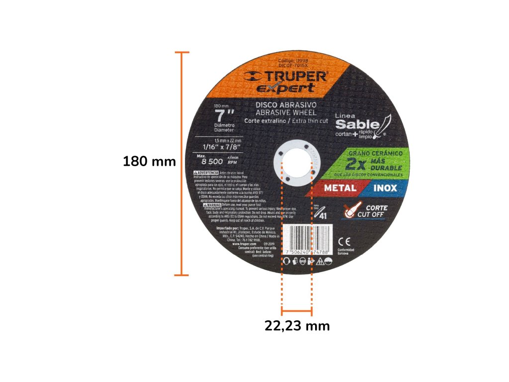 Rezný kotúč TRUPER eXpert DICOF-7015X je navrhnutý pre profesionálne použitie s uhlovými brúskami. Priemer 180 mm a hrúbka 1,5 mm umožňujú presné a rýchle rezanie kovu aj nehrdzavejúcej ocele. Vďaka odolnému spracovaniu je vhodný pre náročné dielenské aj priemyselné úlohy.
