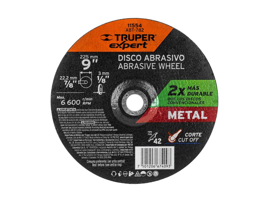 Vypuklý rezný kotúč TRUPER eXpert ABT-782 je určený pre uhlové brúsky a rezanie kovových materiálov. Priemer 230 mm a vypuklý tvar typu 42 umožňujú presné a efektívne rezanie. Odolná konštrukcia kotúča zabezpečuje dlhú životnosť aj pri náročnom používaní v dielni alebo priemysle.