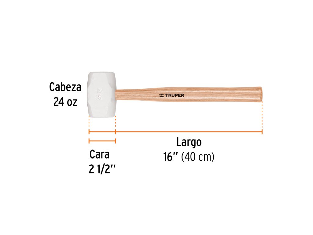 TRUPER - Gumené kladivo MH-24: biela gumová hlava 680 g, drevená rukoväť 40 cm