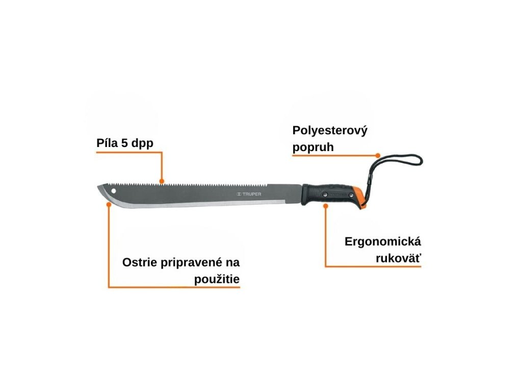 Mačeta TRUPER MACH-18: je ideálnym nástrojom pre náročné úlohy v záhrade, lese, na stavbe alebo pri práci okolo domu. Vďaka robustnej konštrukcii a čepeli z vysoko kvalitnej ocele si poradí s rúbaním dreva, čistením krovinatého porastu, rezaním materiálov a ďalšími náročnými prácami.