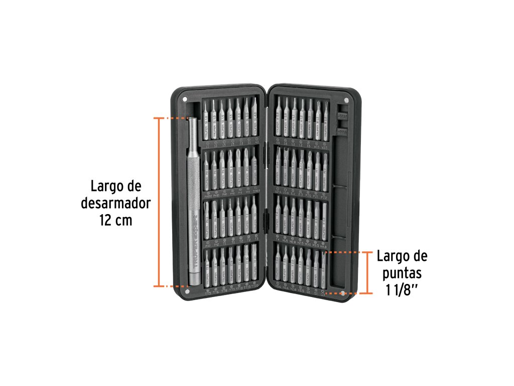 Precízny skrutkovač TRUPER JOY-57X je profesionálna sada náradia určená pre elektroniku a presné servisné práce. Obsahuje 56 vymeniteľných bitov z ocele S2, ktorá poskytuje vysokú odolnosť voči opotrebeniu a dlhú životnosť pri práci s drobnými skrutkami.