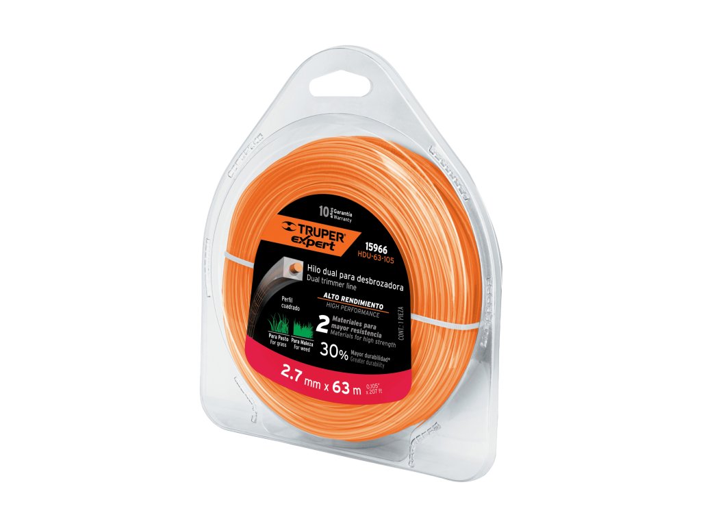 Žacia struna TRUPER HDU-63-105: výkonná a odolná struna pre váš krovinorez. Štvorhranný profil zaisťuje čisté rezy a až o 30% dlhšiu životnosť. Vďaka polymérovému jadru a 2 materiálom je vysoko flexibilná a odolná. 4 ostré hrany pre efektívne kosenie buriny a trávy.