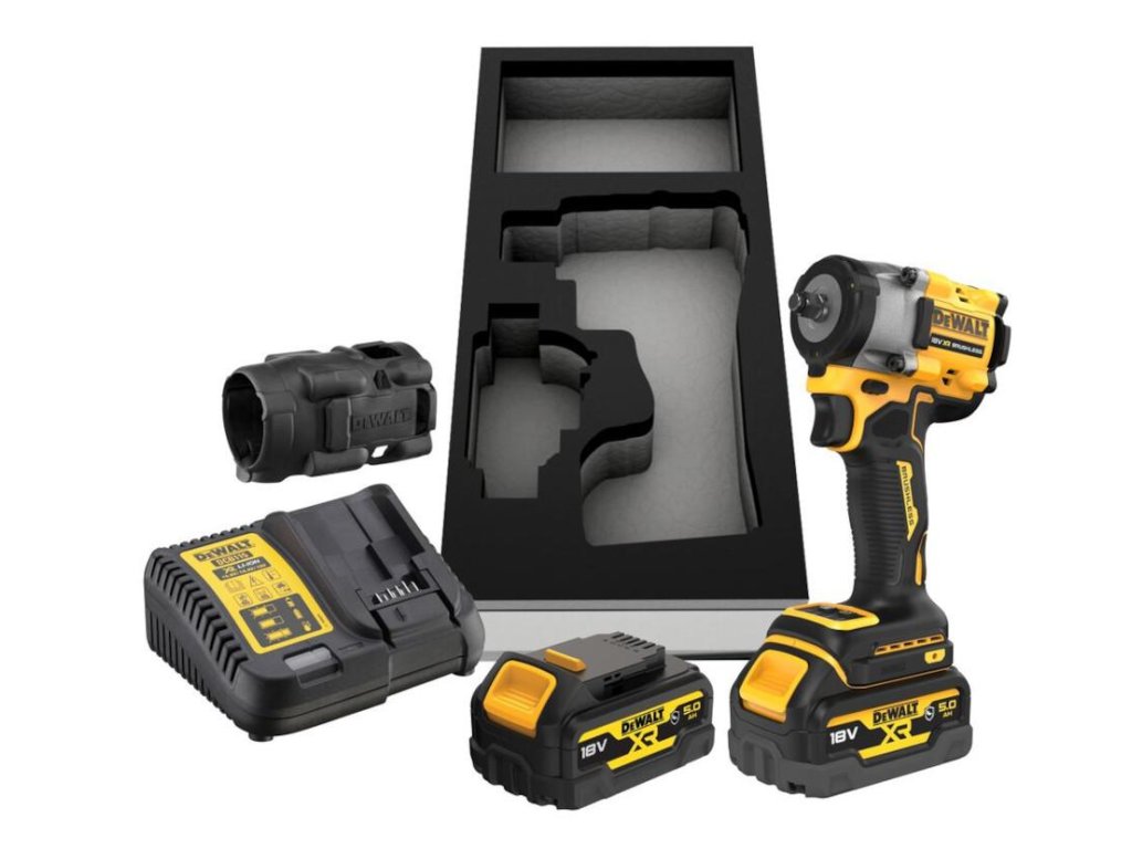 - DCF923P2G: 2× akumulátor DCB184G s GFN krytom, s ochranným krytom tela náradia a tvarovanou PUR vložkou na uloženie do montážneho vozíka.