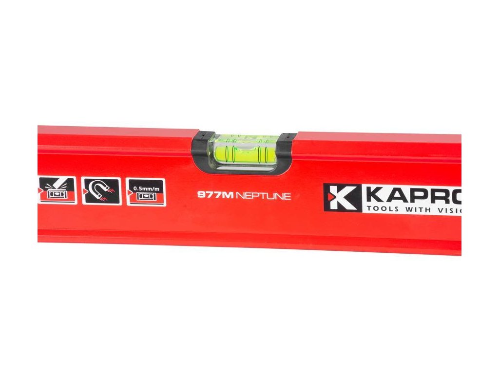Vodováha KAPRO® 977-40 je praktickým pomocníkom všetkých murárov, stavbárov aj inštalatérov. Svoje využitie však nájde aj v dielňach domácich kutilov. Vodováha je vybavená tromi akrylovými libelami. Jednou horizontálnou libelou s vyznačením náklonu do 2° a dvomi vertikálnymi libelami. Na jej koncoch sa nachádzajú gumené hrany, ktoré vynikajúco tlmia nárazy. Vodováha poskytuje presnosť 0.5 mm/m. Vyznačuje sa výbornou priľnavosťou na stenu. Jej povrch je jemne frézovaný. Dĺžka vodováhy dosahuje 150 cm.
