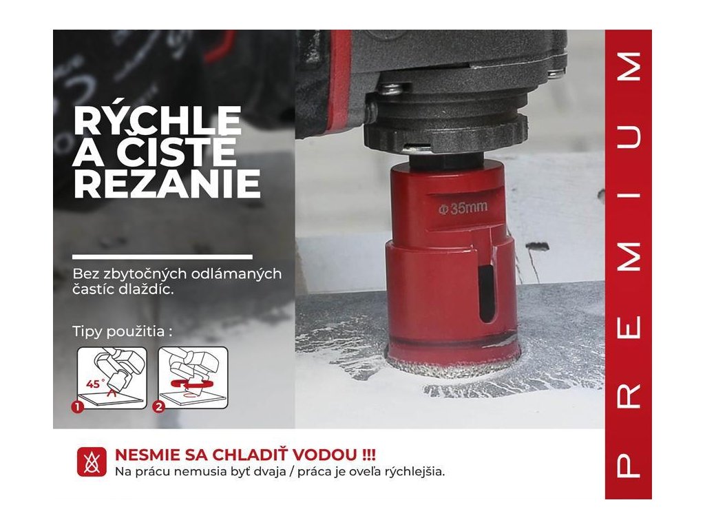 Vyrezávač Strend Pro Premium je vhodný na vyrezávanie všetkých druhov tvrdeného kameňa a jeho zlúčenín, keramických dlaždíc, mramoru, gresu, porcelánu a žuly. Špičkový proces spájania diamantov zabezpečuje vysokú odolnosť voči vysokým teplotám a predlžuje životnosť. Extrémne ľahké rezanie a vysoká výkonnosť pri vykružovaní. Perfektne ho využijete pri montáži kúpeľnovej sanity a príslušenstva, inštalácii káblov, elektrického vedenia, radiátorov atď. Je použiteľný s akoukoľvek vŕtačkou s použitím vhodného adaptéru. Typ upínania: M14, Ø vyrezávača je 68 mm.