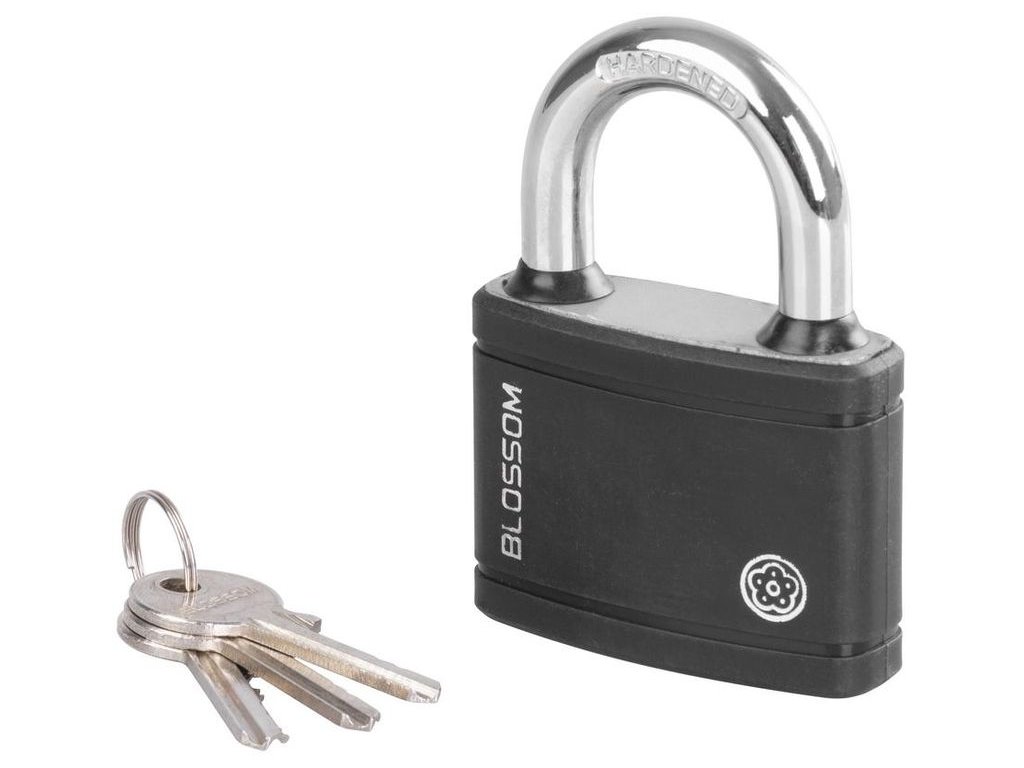 Zámok Blossom je určený na uzamykanie brán, dverí a skríň. Je to visiaci zámok so šírkou 60 mm. Súčasťou sú aj 3 náhradné kľúče.
