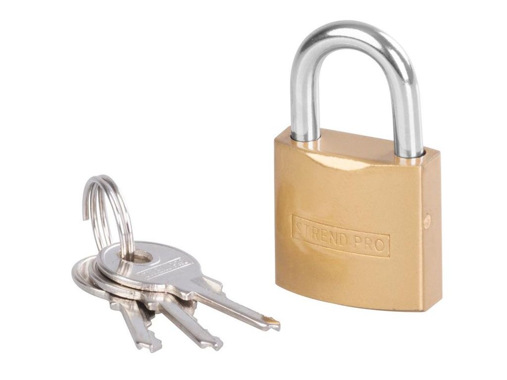 Zámok Strend Pro je určený na uzamykanie brán, dverí a skríň. Je to visiaci zámok so šírkou 25 mm. Súčasťou sú aj 3 náhradné kľúče.