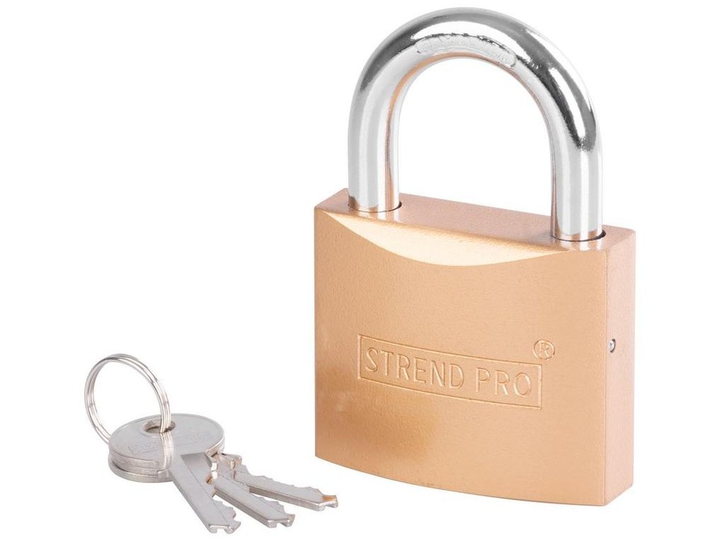 Zámok Strend Pro je určený na uzamykanie brán, dverí a skríň. Je to visiaci zámok so šírkou 63 mm. Súčasťou sú aj 3 náhradné kľúče.