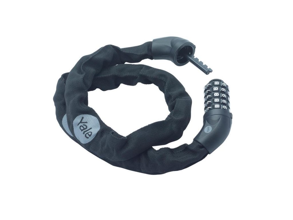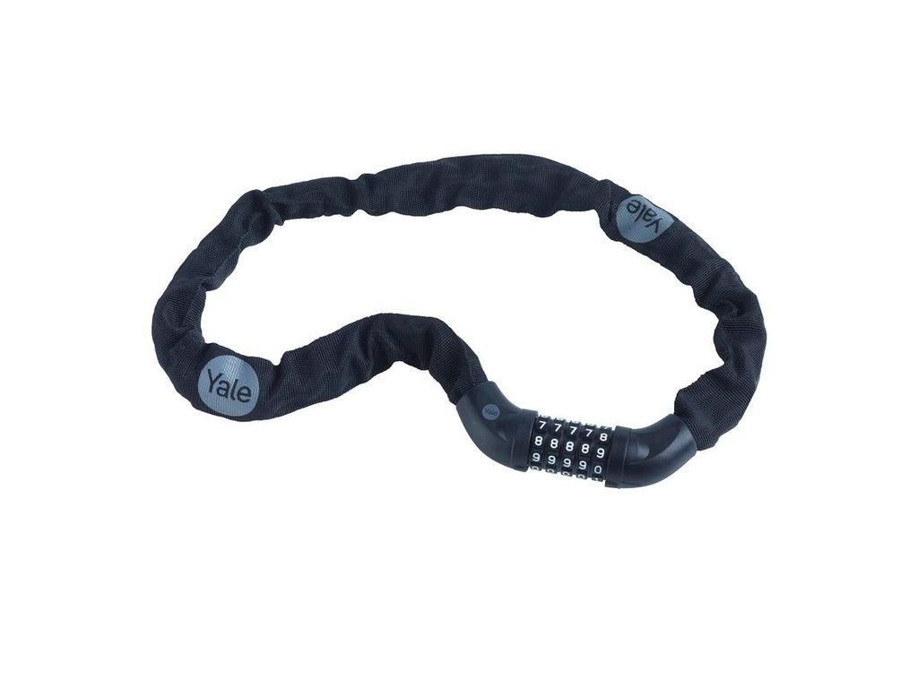Reťazový zámok na bicykel Yale na kód. Reťaz vyrobená z uhlíkovej ocele. Odolný voči poveternostným vplyvom. Hrúbka reťaze: 6 mm. Dĺžka oceľovej reťaze: 90 cm.