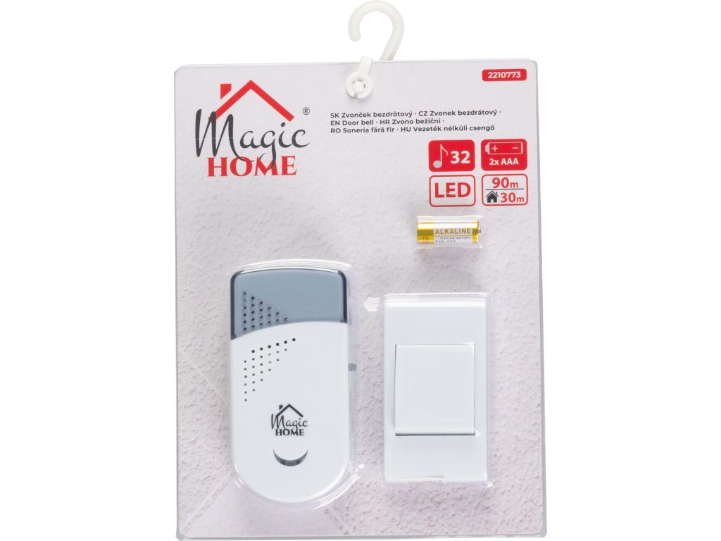Jednoduchý, spoľahlivý a bezproblémový bezdrôtový zvonček MagicHome. Vysielač zvončeka využíva technológiu PUSH-RE, ktorá po stlačení tlačidla vysiela signál cez určené rádiové frekvencie. Dosah max. 150 m. Na výber 32 zvonení.
